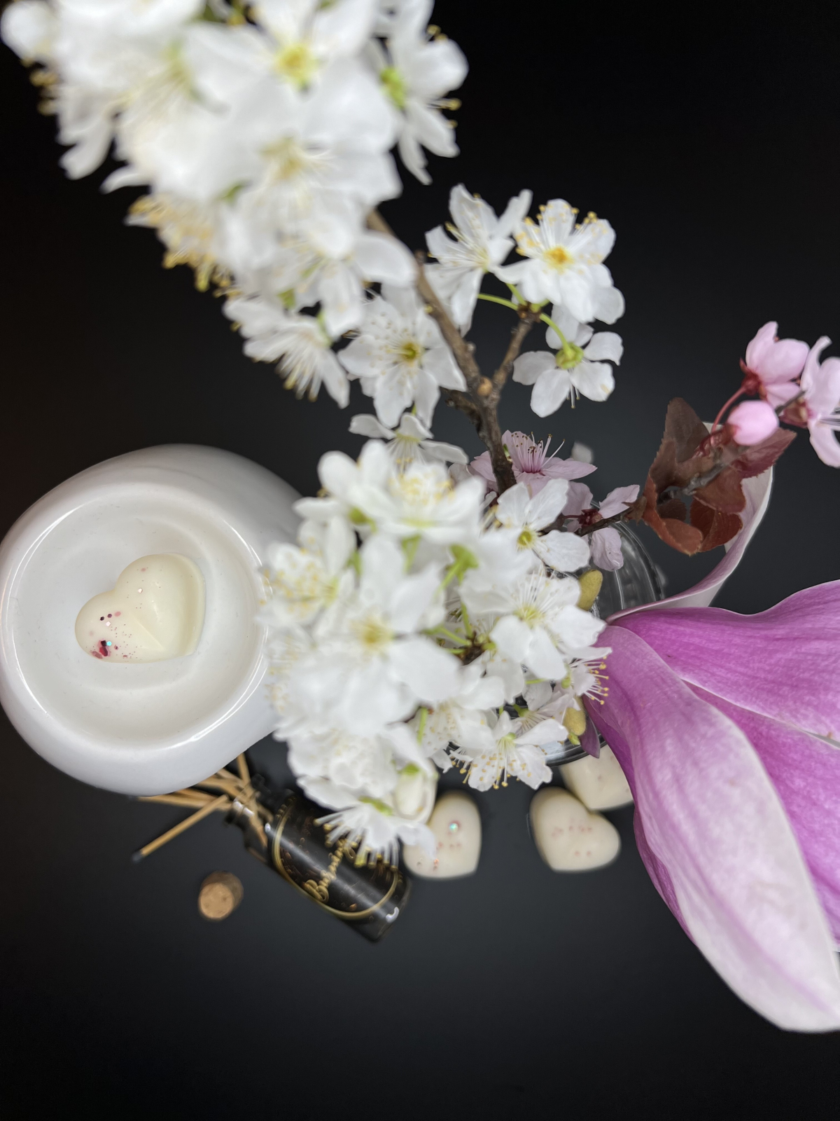 Forma delicată de inimă completează parfumul, oferind un detaliu vizual plăcut și sofisticat. Fiecare inimioară eliberează treptat aroma persistentă și creează o atmosferă cozy, reconfortantă și primitoare. Cherry Blossom este ideală pentru momentele de relaxare.